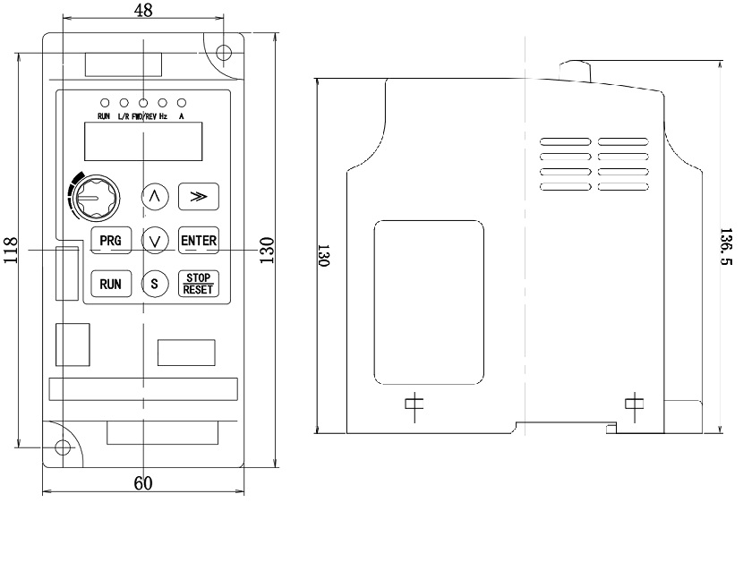 功率:0~0.75kw 0~500HZ 尺寸:136.5mm*130mm*60mm